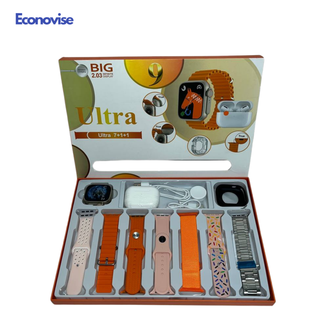 پک هدیه ساعت و ایرپاد 7+1+1 موجود در 2 رنگ بندهای رنگی و مشکی ساده ویژگی های محصول : 7 عدد بند ساعت مختلف و شیک 1 عدد ایرپاد با کیفیت 1 عدد محافظ سیلیکونی دارای کابل شارژ ساعت و کابل شارژ ایرپاد صفحه نمایش 2.3 اینچ تکنولوژی صفحه نمایش : IPS مقاوم در برابر پاشش آب رزولوشن : 240 * 296 پیکسل دارای واچ فیس های متنوع