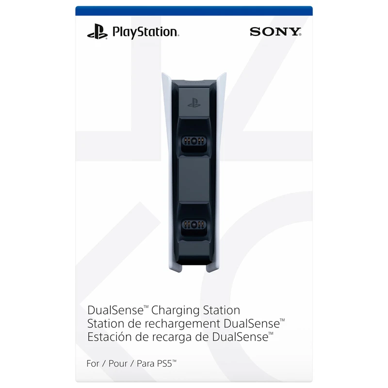 شرکت سونی از بهترین کمپانی های دنیا در زمینه الکترونیکی می باشد، که این شرکت محبوب بعد از تولید کنسول پلی استیشن ۳ دسته بازی از نوع بی سیم با باتری داخلی تولید کرد. همراه با این دسته ها یک کابل جهت شارژ نیز در اختیار کاربر قرار می گیرد. سونی با رونمایی پلی استیشن ۵ از پایه شارژ دسته را نیز معرفی کرد. پایه شارژ سونی دارای طراحی و ظاهری بسیار شیک به رنگ سفید مشکی با لوگو PlayStation حک شده بر روی بدنه محصول می باشد. این استند قابلیت شارژ همزمان دو دسته از طریق قرار گرفتن بر روی پایه بدون نیاز به کابل را داراست. از دیگر ویژگی های این استند قطع جریان برق پس از پر شدن شارژ یه منظور جلوگیری از آسیب به باتری دسته را می توان نام برد.